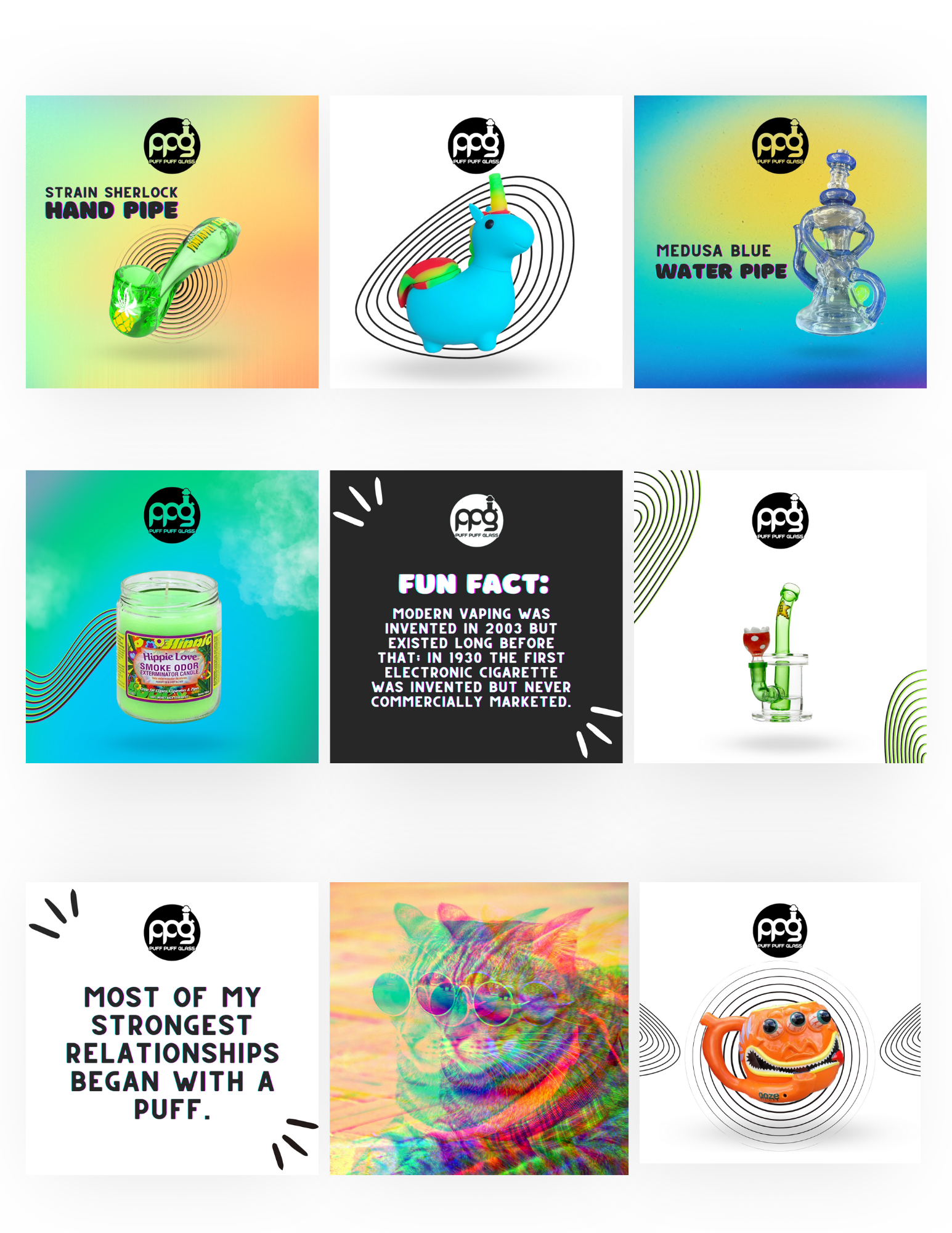 Creating bold, eye-catching visuals that resonate with cannabis culture while remaining accessible, responsible, and platform-compliant. Content needed to adapt quickly to changing inventory, promotions, and trends without compromising brand consistency. Designs also had to balance lifestyle-driven storytelling with clear product communication across multiple social platforms.